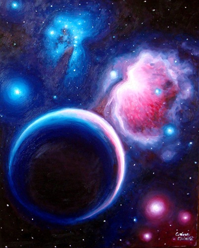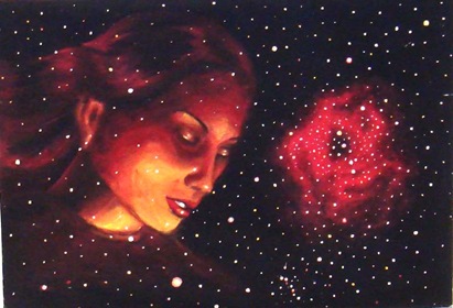 I've made this painting inspired by the Rosette Nebula, this space rose that reminds me of the delicate beauty of red roses and young girls.This is my view of this space rose. This is the warm dream of love these red space rose creates in my mind.This painting was sold two years ago. The rosette nebula is a wonderful nebula in the Monoceros constelation.